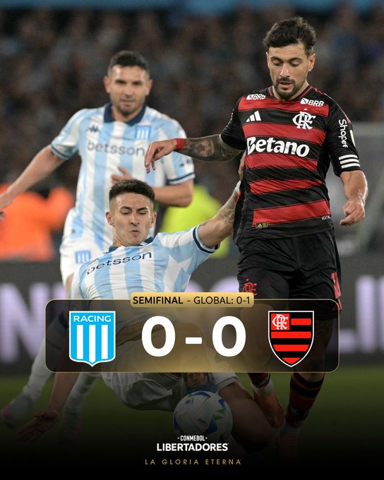 RADIO EL MUNDO DEPORTES: Racing empató como local 0 a 0 con Flamengo de Brasil al término del encuentro que disputaron este miércoles a la noche en el “Cilindro de Avellaneda” y fue eliminado en semifinales de la Copa Libertadores 2025, luego de haber perdido por 1 a 0 en el partido de ida.