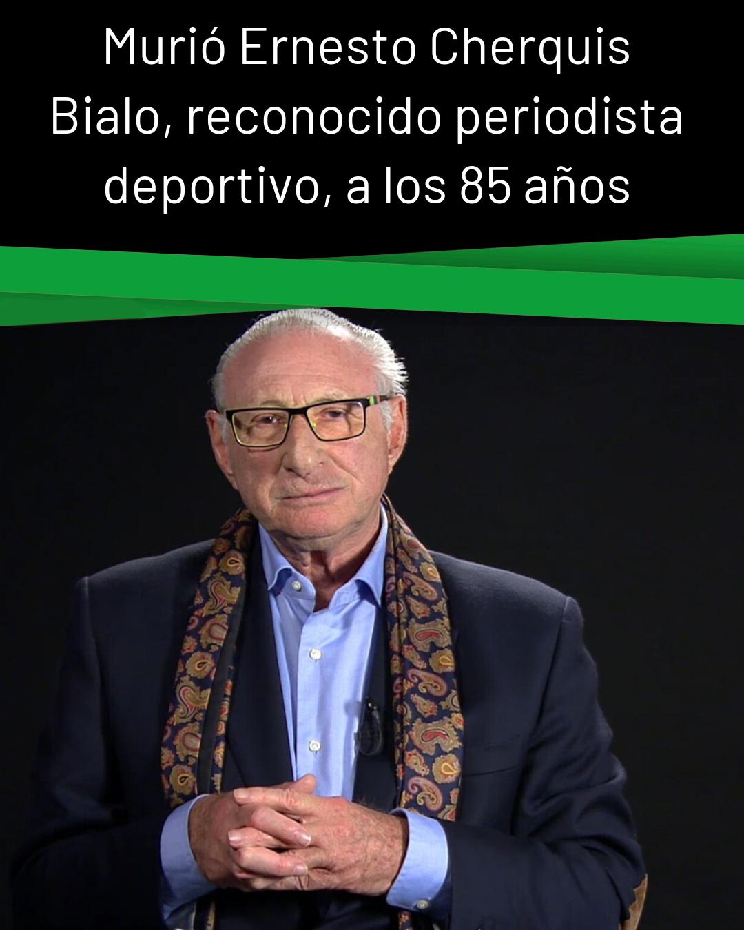 RADIO EL MUNDO DEPORTES: Este viernes, después de décadas de brillantes coberturas deportivas, una excelsa carrera en radio, TV y 30 años en la revista El Grafíco (ocho como director), Ernesto Cherquis Bialo dijo adiós. El maestro del periodismo falleció a los 85 años, meses después de sobreponerse a una de las batallas más difíciles de su vida cuando fue internado en el hospital Alemán de Buenos Aires por un broncoespasmo que derivó en una neumonía bilateral.